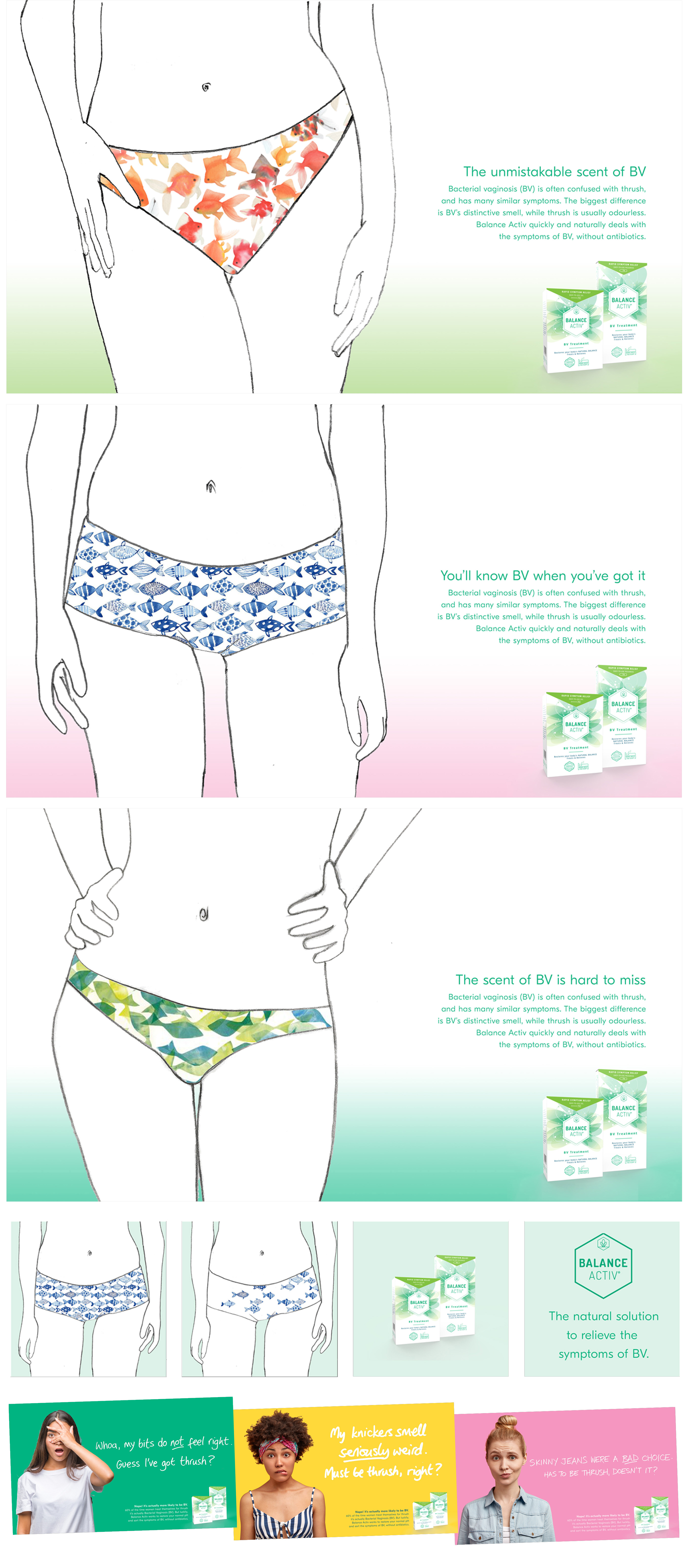 Straight-talking concepts for a difficult female issue, created with copywriter Fiona White.