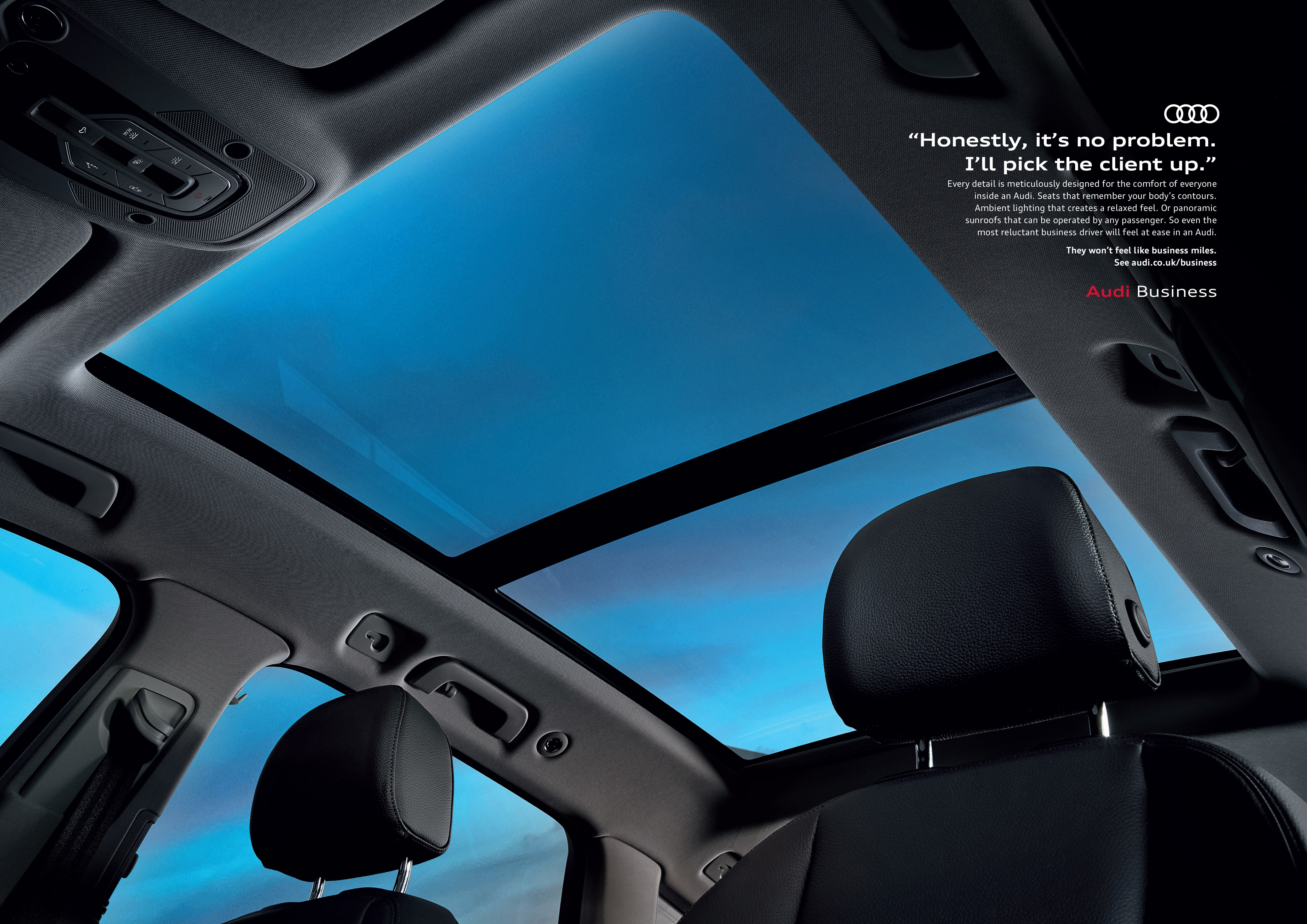 At BBH we needed a fresh approach for their first Audi Business campaign. Not the usual shot of a car with an alluring pun or price message. So we kept it simple and aspirational by talking directly to fleet managers and drivers, reflecting their world and the joy of driving an Audi.