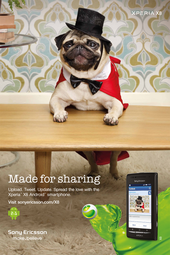 Sony Ericsson wanted to shout about how easy it was to share pics and vids with the X8. In a saturated market, we needed something to stand out. Having said that, the Bulldog was such a big boy, he could barely stand up.